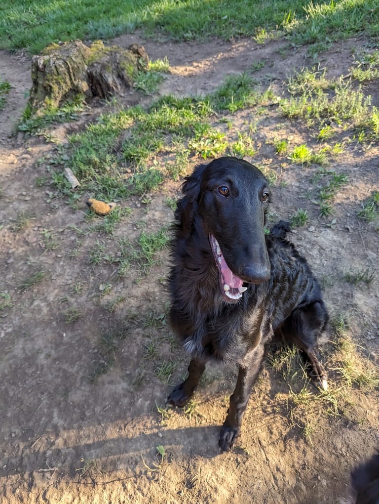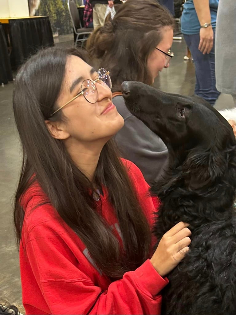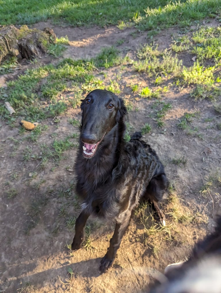 Ahsoka is an exciting young girl who is just starting her coursing career. She is pictured below at the Columbus Meet the Breed event, making new friends and influencing people.