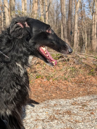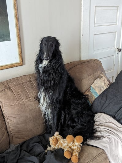 Drizzt was exactly what we were hoping for when we bred this litter. He has beautiful dark eyes, scissors bite, and lovely curves. Due to COVID-19, we weren't able to get him out as much as we wanted. He has the first leg of his JC, which he completed in a snowstorm! We plan to do some obedience work with him, and then hope to hit the show ring. His temperament is sweet and funny, and he is an absolute joy to live with.